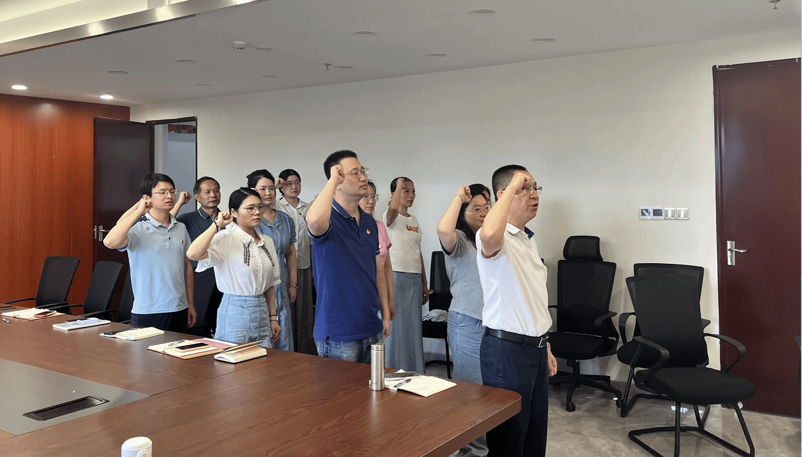 党课结束后,党支部书记宣读了机关党委关于批准王丽春同志为中共预备党员的批复,一场庄重的预备党员入党宣誓仪式拉开帷幕。预备党员王丽春同志在党支部书记的带领下,郑重地举起右手庄严宣誓,其他党员重温入党誓词,表达了对党的忠诚和为共产主义事业奋斗的坚定决心。